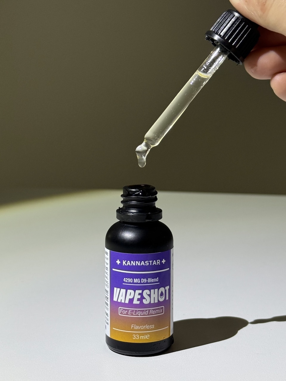 To ensure even distribution, mix VAPESHOT thoroughly with your existing E-Liquid or cannabis vape juice. If adding it directly to an e-cigarette tank, shake well after mixing. Some high VG-content E-Liquids may require extra shaking to prevent separation before vape.
